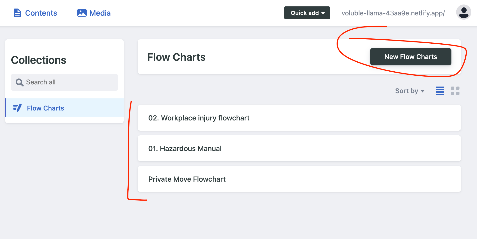 Flowcharts have unique urls that are determined by their title.