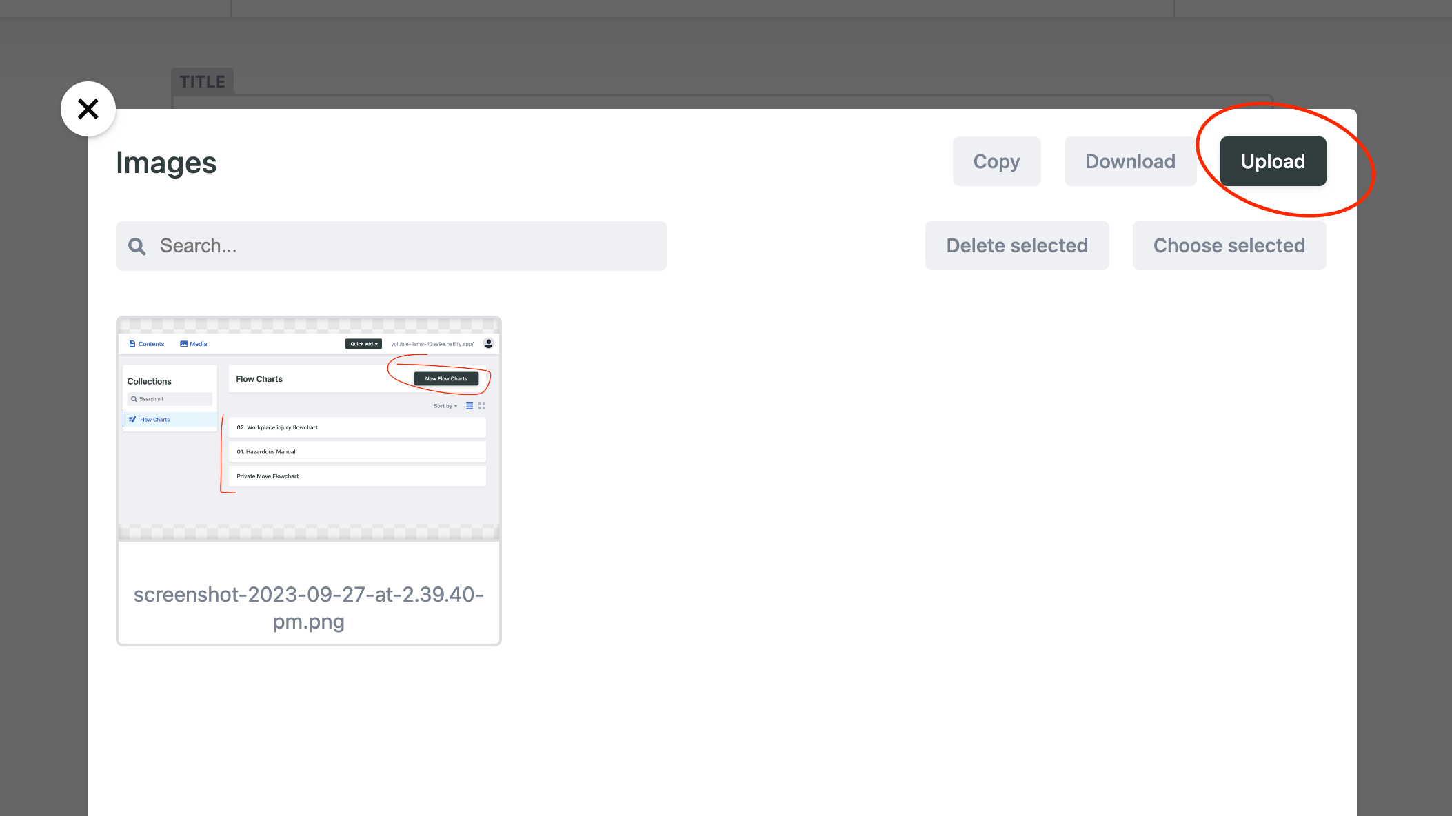 To do so, click the plus icon and then select "image" from the dropdown.